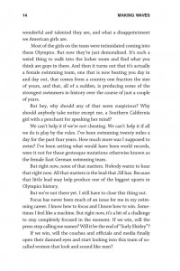 At the heart of Making Waves is Babashoff’s deeply personal story, one that she has never shared in public. But it is part of a much bigger story—one about morality, politics, celebrity, and the win-at-any-cost mentality and its tragic impact on society. Making Waves weaves together four distinct narrative threads: Babashoff’s celebrated career as a champion swimmer on the international stage; the behind-the-scenes drama of her personal life; the story of doping in East Germany (the East German athletes themselves were the ultimate victims, developing a wide array of illnesses over the years as a result of the drugs they were forced to take); and the modern era of steroids and other performance-enhancing drug abuse that ensued after the 1976 Olympics.